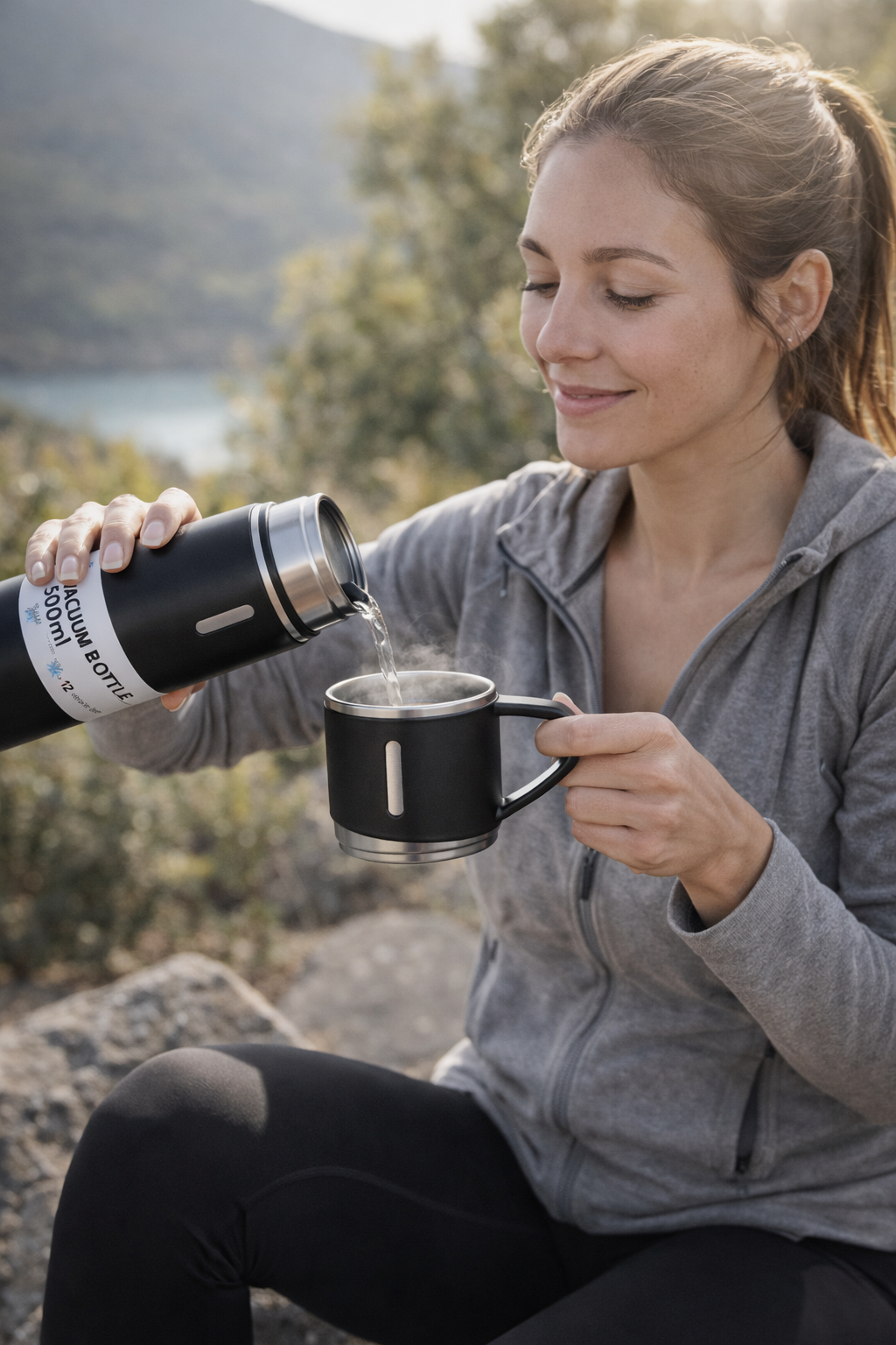 As 3 xícaras incluídas no conjunto tornam ainda mais conveniente o compartilhamento de suas bebidas com amigos e familiares, criando momentos memoráveis em cada gole. Além disso, a tampa hermética assegura que você possa transportar sua garrafa com tranquilidade, sem riscos de vazamentos indesejados no seu carro, bolsa ou mochila.
